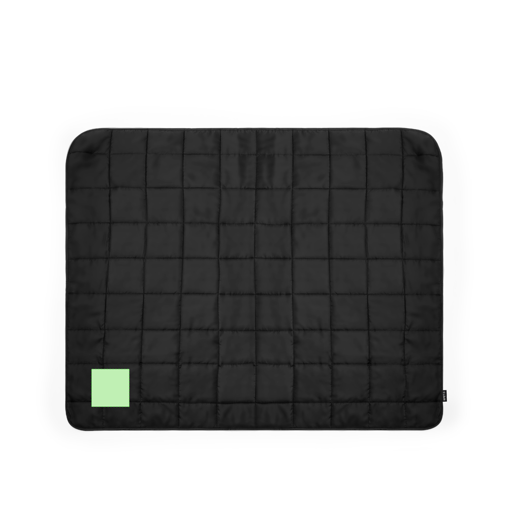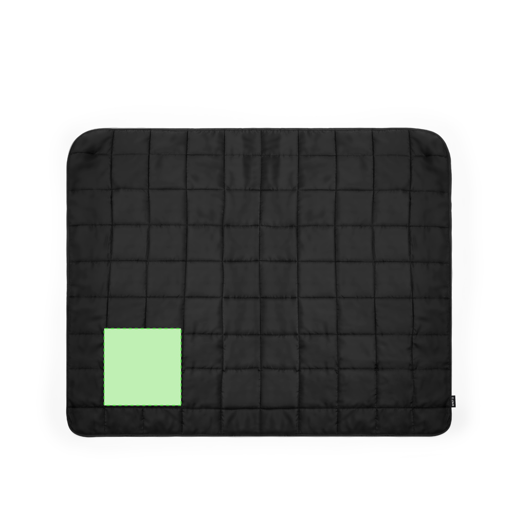 Premium picknickdeken gemaakt van duurzaam 190T RPET polyester met zwarte afwerking. Opvouwbaar, met verstelbare zelfsluitende hoes in 190T RPET polyester. In maat 120x150 cm, gemakkelijk op te vouwen en compact van formaat, met RPET logo.