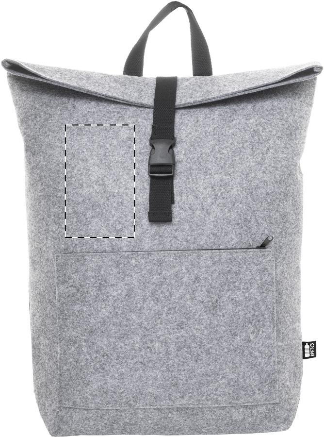 RPET vilten rolltop-rugzak met hoofdvak met gespsluiting en voorvak met ritssluiting, laptopvak (15") en gewatteerde schouderbanden. Met opvallend RPET-label.