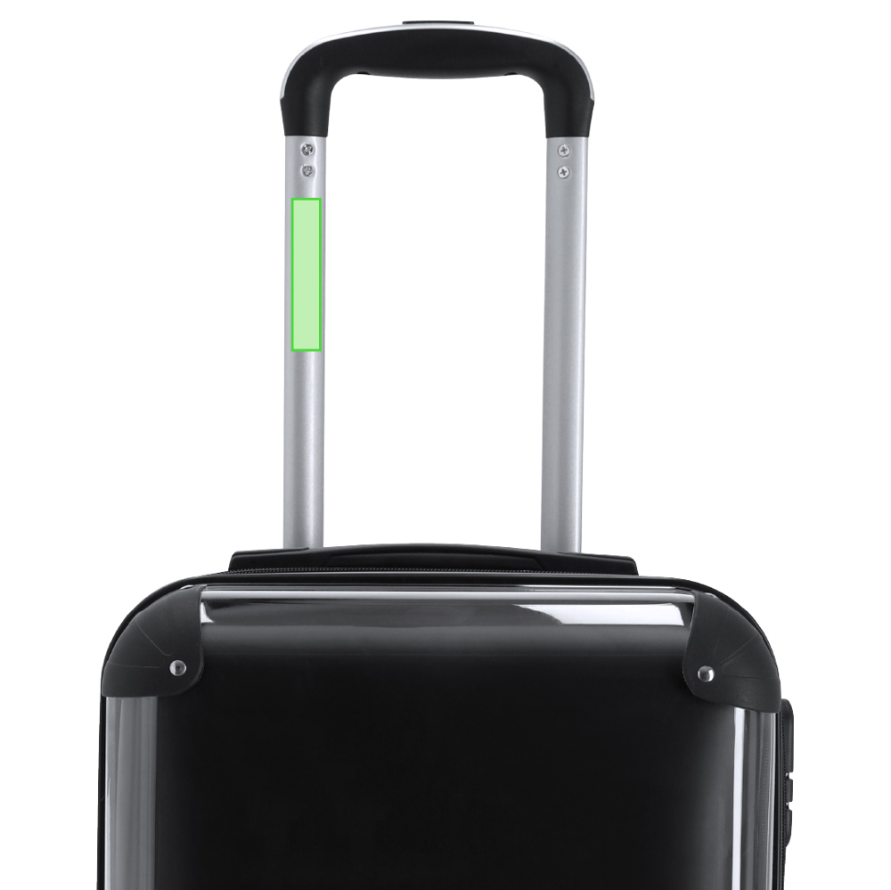 Trolley, ideaal voor personalisatie met eigen ontwerp. Voorzien van een transparante PC-voorzijde die het eenvoudig maakt om het gewenste ontwerp in te voegen en maximale zichtbaarheid te garanderen. Achterzijde in stevig zwart ABS, voor sterkte en duurzaamheid. Met zijdelings combinatieslot en dubbele rits-trekkers. Binnenin met ritsvak en verstelbare banden. Uitgerust met telescopisch handvat en 4 zwenkwielen.